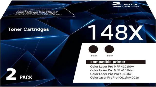 Package Included: 2 pack 148X toner cartridge (Black Color) with chip W1480X W1480A compatible with hp laserjet pro mfp 4101fdw