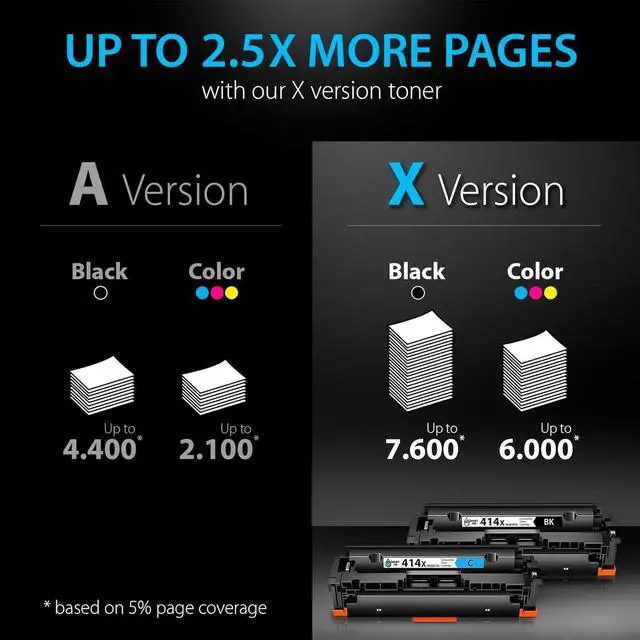 Plug and Print: Smart Ink 414X features a built-in smart chip, so no extra steps or chip handling are required during installation in HP Color LaserJet Pro MFP M479fdw or other compatible printers listed above