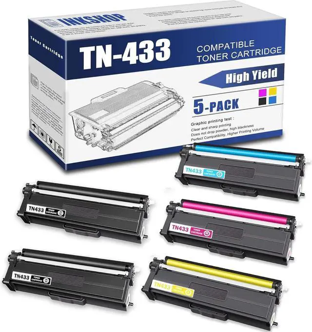 Package Contents : 5 Pack Compatible TN-433BK TN-433C TN-433Y TN-433M Toner Cartridge