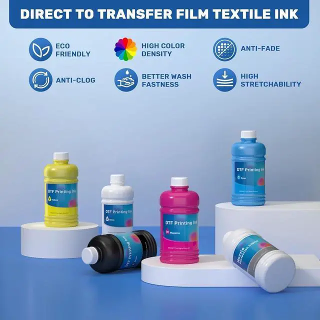 [High-Opacity White DTF Ink] Formulated with ultra-fine particles, our white dtf ink provides dense coverage and resists sedimentation. This anti-clogging formula protects dampers and printheads, ensuring clean and stable printing results.