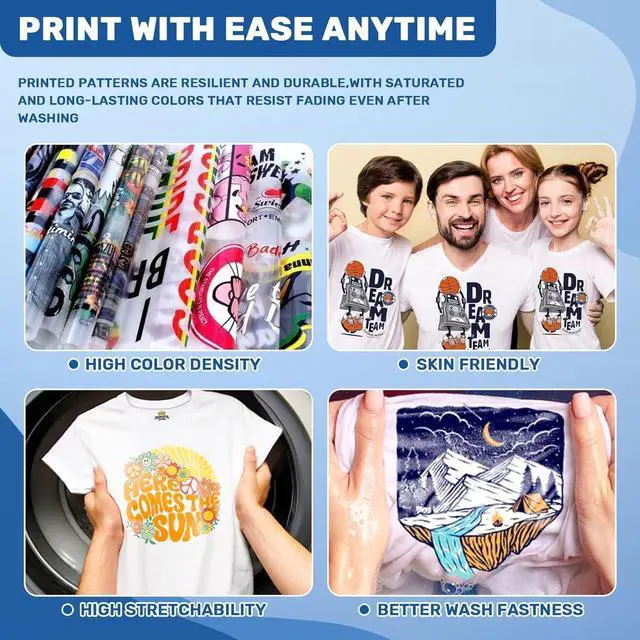 [Vivid Colors & Strong Powder Adhesion] The CMYK inks deliver rich, saturated colors, while white dtf ink ensures balanced layering. Optimized for strong adhesion to DTF powders, every transfer shows crisp details, vibrant tones, and a smooth hand feel.