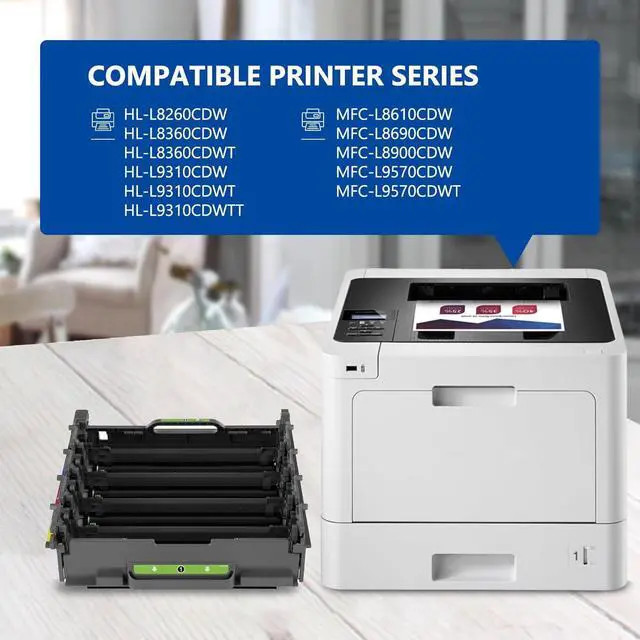 Great Compatibility with Brother: HL-L8260CDW, HL-L8360CDW, HL-L8360CDWT, HL-L9310CDW, HL-L9310CDWT, HL-L9310CDWTT, MFC-L8610CDW, MFC-L8900CDW, MFC-L9570CDW, MFC-L9570CDWT Printers