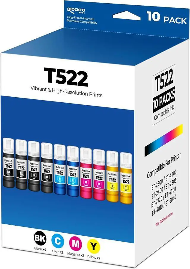 Package Includes: 522 ink refill bottles 10 pack contains 4 x 522 black ink, 2 x 522 cyan ink, 2 x 522 magenta ink, 2 x 522 yellow ink. No chips or cartridges neededrefill directly (Not sublimation ink).