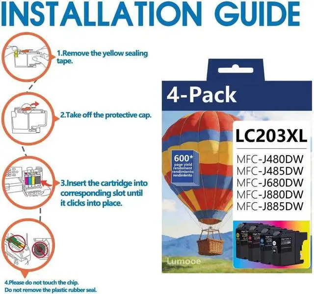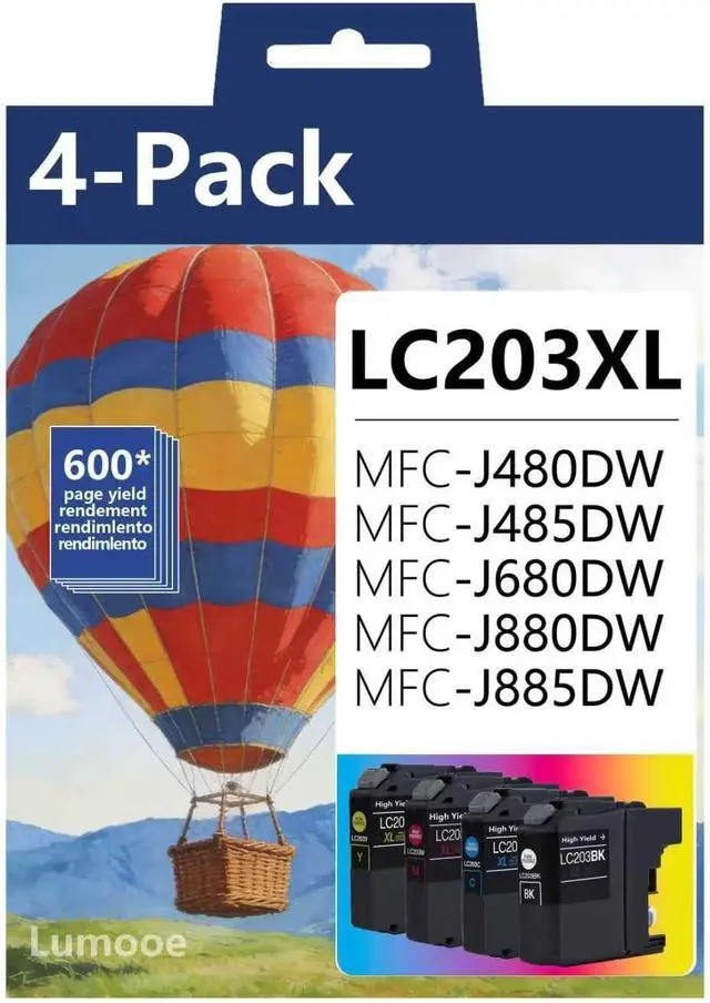 Complete 4 Pack LC203 XL High Yield Ink Cartridges: LC203BK Ink Cartridge, LC203C Ink Cartridge LC203M Ink Cartridge LC203Y Ink Cartridge. Replace all colors at once for seamless, vibrant printing without annoying mid-project ink changes