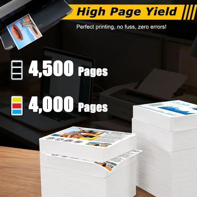 Reliability Longevity: Our Toner Cartridge with reliable printing lifespan. 4,500 pages per Black cartridge, 4,000 pages per Cyan / Magenta / Yellow cartridge (5% coverage on A4 paper), which you need't replace frequently