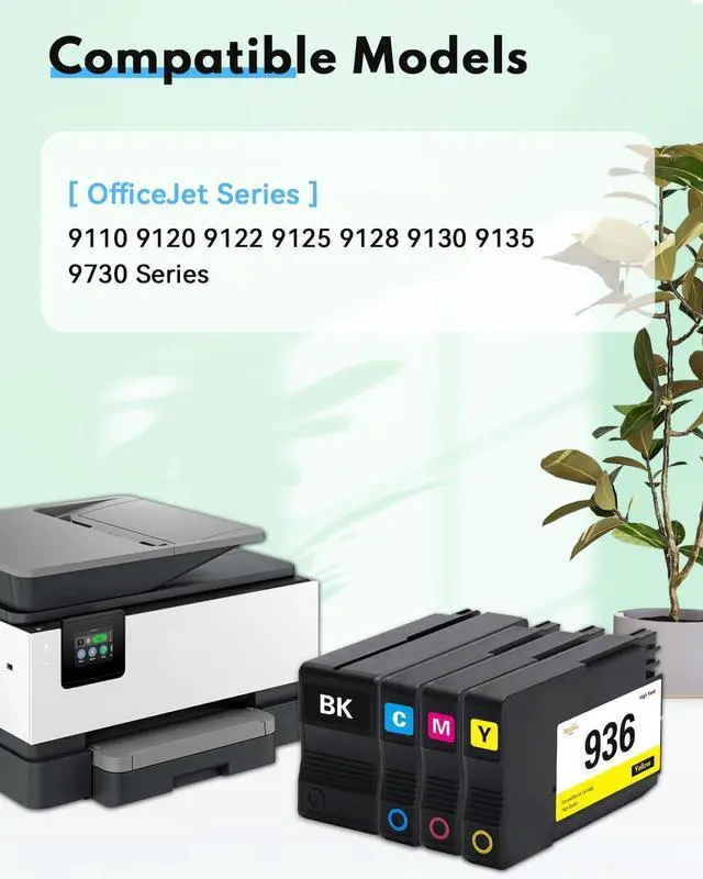 Important Note: Our 936XL 936 Ink Cartridges Combo Pack are Not compatible with *e Series Printers and Not compatible with printers which actived for HP+ service (Such as OfficeJet Pro 9120e 9125e 9122e 9128e 9110b 9120b 9130b 9130e 9135e 9730e Series Printer)