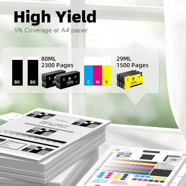 High Yield: 80ml/2300 pages per Black 712 712XL Ink Cartridge, 29ml/1500 pages per Color 712 712XL Ink Cartridge at 5% coverage (A4/letter)