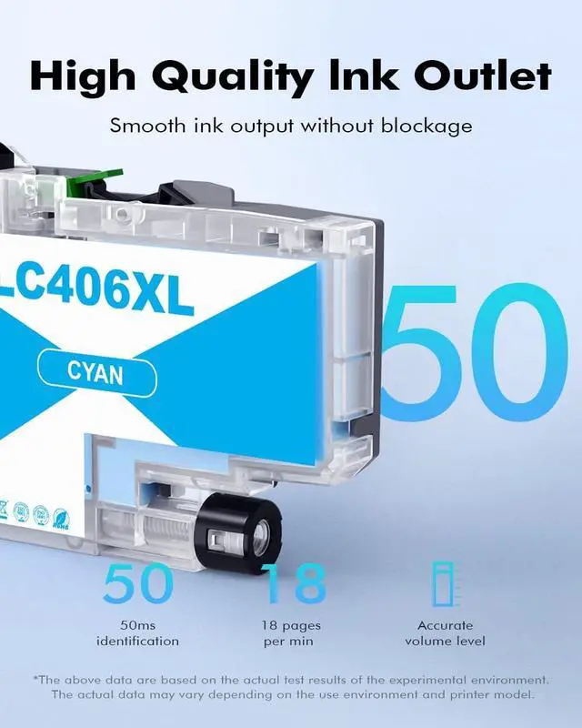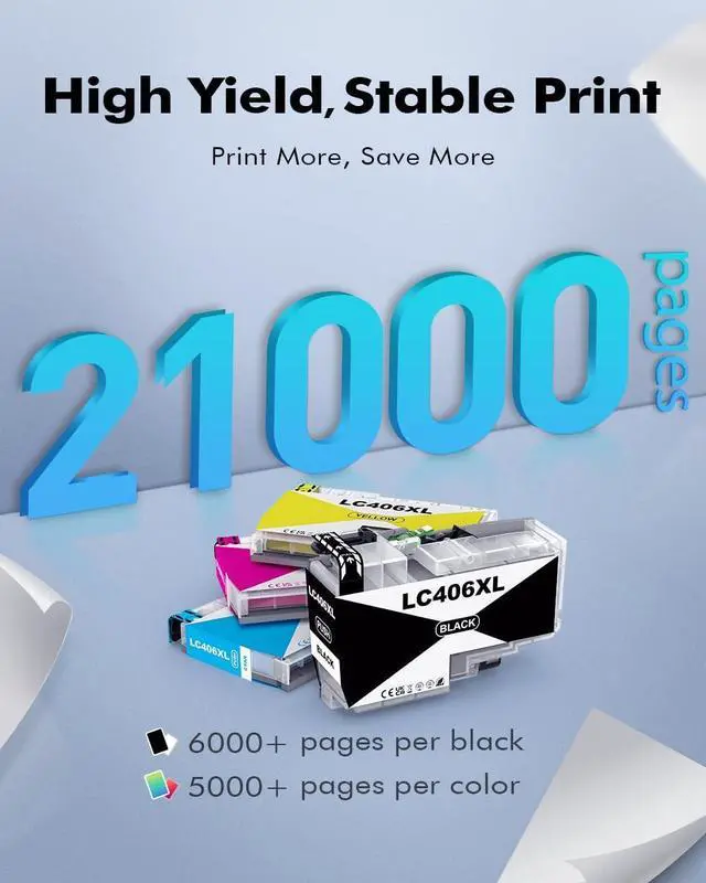 High Page Yield: High yields up to 6000 pages per LC406XL Black Ink Cartridge and 5000 pages per LC406XL Color Ink Cartridge (5% coveragae*A4 paper size)