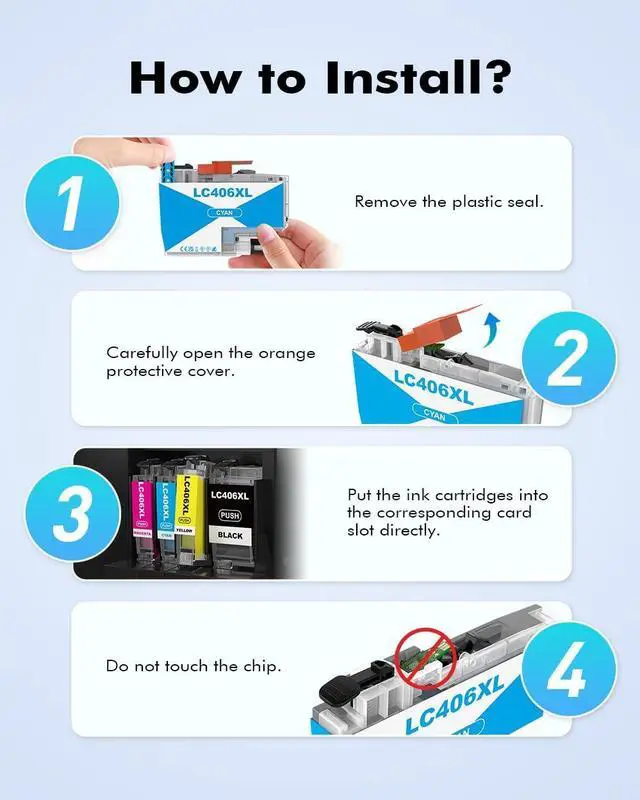 With quality chip: INK4U LC406 LC406XL LC 406 Ink Cartridges for Brother Printer are conveniently equipped with a Latest Upgraded Chip to ensure full working compatibility with your printer