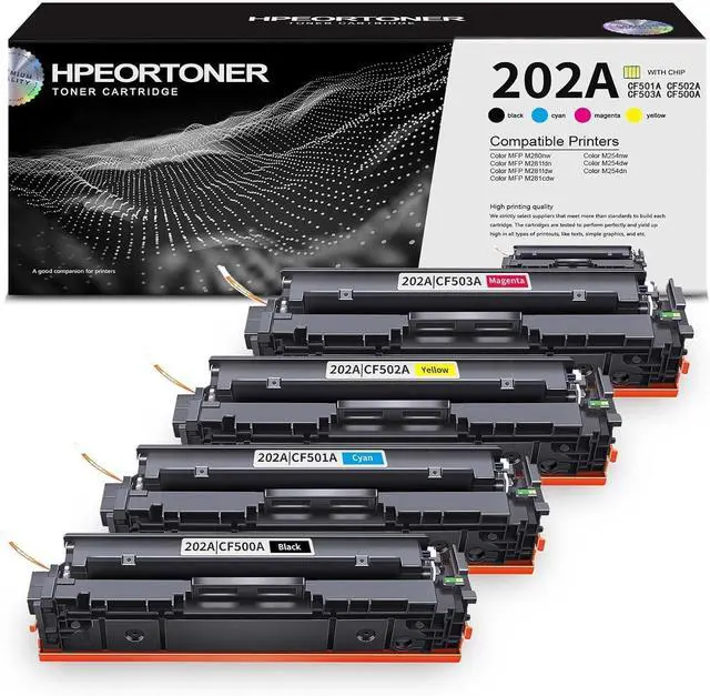 Package Included: 1 Pack 202A| CF500A Black, 1 Pack 202A| CF501A Cyan ,1 Pack 202A| CF502A Yellow Toner,1 Pack 202A| CF503A Magenta Cartridge.