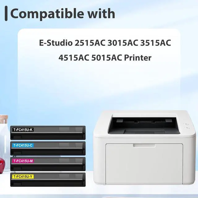 Package Contents 4-Pack T-FC415U Toner Cartridge Replacement for Toshiba T-FC415U-K T-FC415U-C T-FC415U-M T-FC415U-Y Toner Cartridge