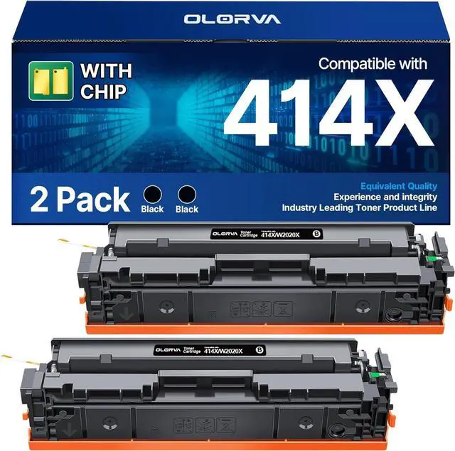 WITH CHIP: 414X Toner Cartridges 2 Black High Yield replacement for hp 414x 414a is equipped WITH CHIP, ensuring high compatibility and help you improve work efficiency. No need to transfer OEM chips to this high yield replacement for hp 414a black toner cartridge