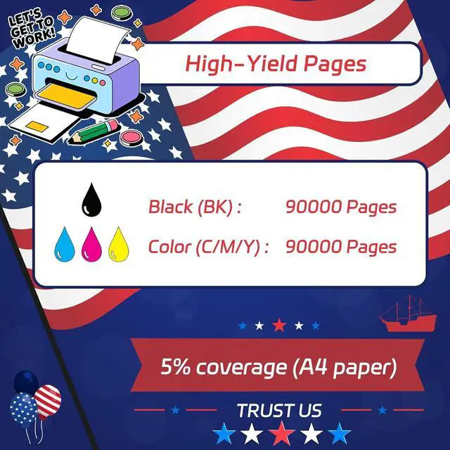 High Page Yield Up to 90000 pages in black for text-heavy documents, and 90000 pages in color (C/M/Y) for vibrant graphics and images
