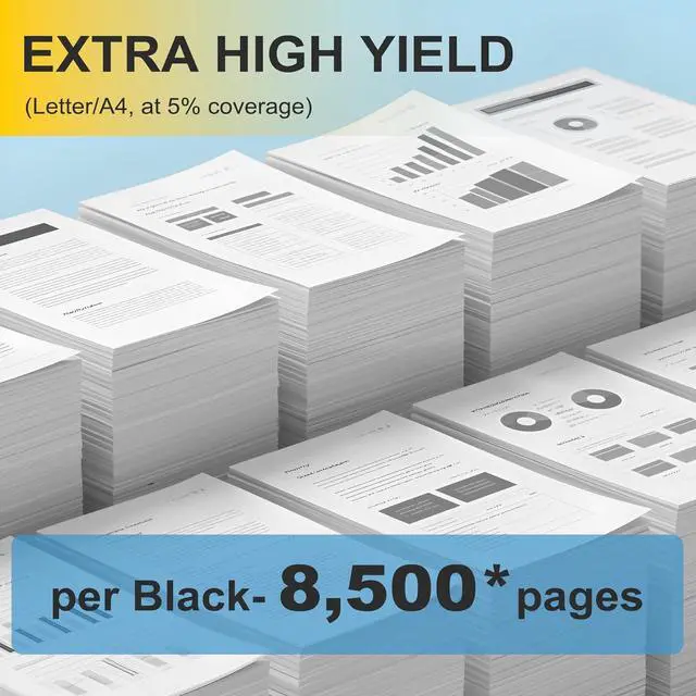 High Page : Each Black Toner Cartridge is about 8,500 pages at 5% coverage of paper A4