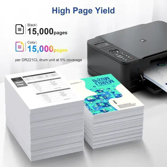 Page Yield: Up to 15,000 pages per DR221 DR 221 CL drum unit at 5 percent coverage of A4 paper.