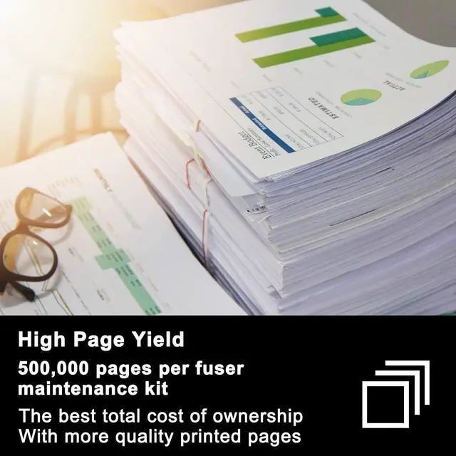 Page Yield: Print up to 50,000 pages per fuser maintenance kit at 5% coverage on letter/a4
