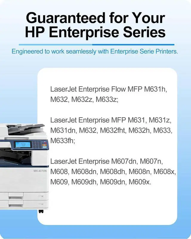 Compatible Printers: for HP LaserJet Enterprise Flow MFP M631h, M632, M632z, M633z; LaserJet Enterprise MFP M631, M631z, M631dn, M632, M632fht, M632h, M633, M633fh; LaserJet Enterprise M607dn, M607n, M608, M608dn, M608dh, M608n, M608x, M609, M609dh, M609dn, M609x printers