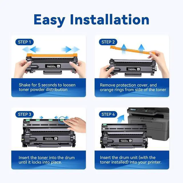 Each Compatible TN830XL toner cartridge delivers sharp Texts, vivid Images and outstanding quality.