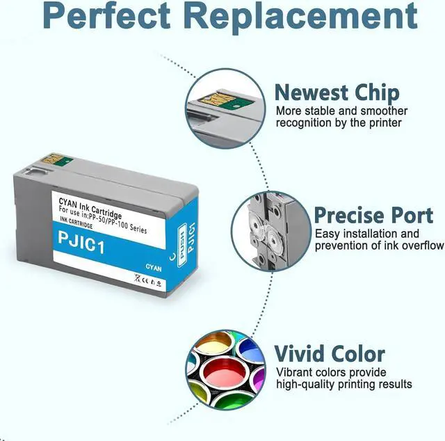 Superior Quality: This high-yield PP50 PP100 ink cartridge uses the latest chip technology and high-quality pigment ink, with an anti clogging nozzle design and easy installation. Provide clear text and graphics, comparable to the original