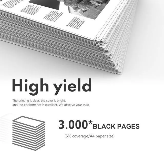 High-Yield Design Prints up to 3,000 pages per cartridge (based on ISO/IEC 19752 standards), meeting the demands of high-volume printing tasks