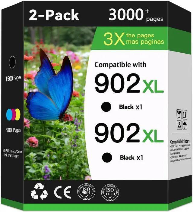 Package Content: 2 Pack High Yield Ink Replacement for HP 902XL Ink Cartridge