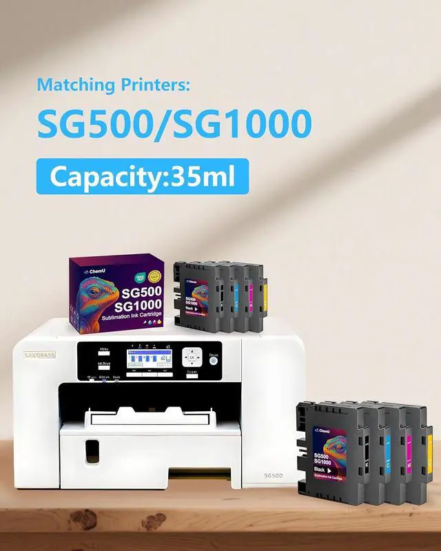 Compatible with SG500 & SG1000 PrintersWorks flawlessly on Sawgrass SG500 and SG1000 printers (with Sawgrass Print Manager); includes a full set of Sublimation Ink Cartridges (Black, Cyan, Magenta, Yellow)