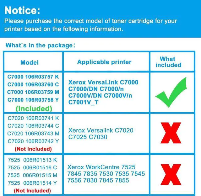 Compatible Printers: Replacement for Xerox VersaLink C7000 C7000/DN C7000/n C7000V/DN C7000V/n C7001V_T