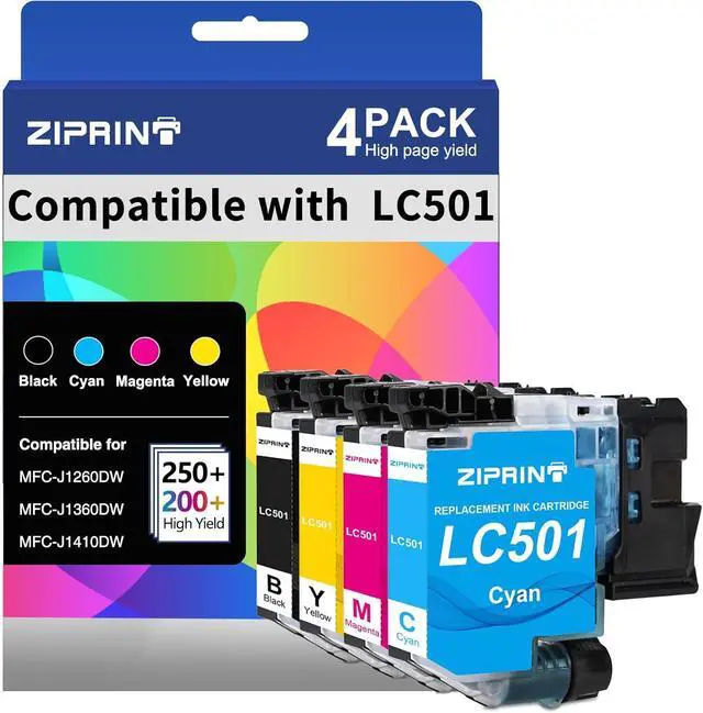 Compatible Printers: ZIPRINT replacement for LC501XL ink cartridges Compatible with MFC-J1260DW MFC-J1360DW MFC-J1410DW printer replacement for Brother LC501 Ink Cartridges.