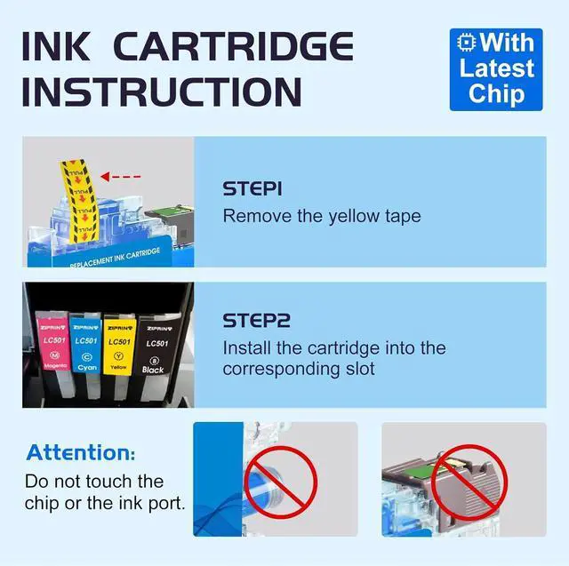 Smart Chip: ZIPRINT replacement for LC501 printer ink smart chip enables instant printer recognition without setup, supporting smooth and uninterrupted printing.