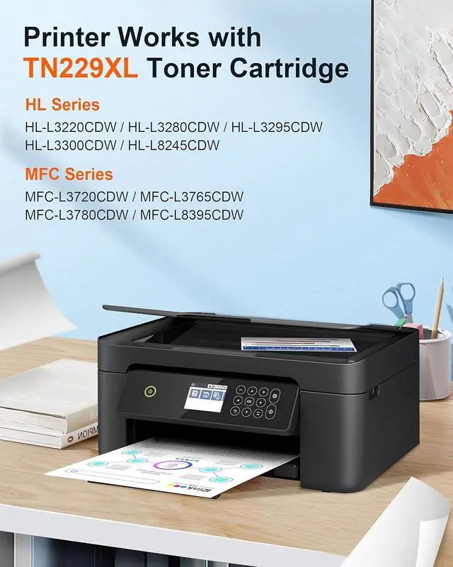 • Printer Compatibility: E-Z Ink Pro TN229XL 4 pack toner cartridges Compatible with MFC-L3720CDW MFC-L3780CDW HL-L3220CDW HL-L3280CDW HL-L3300CDW HL-L3295CDW HL-L8245CDW MFC-L8395CDW MFC-L3765CDW Laser Printers
