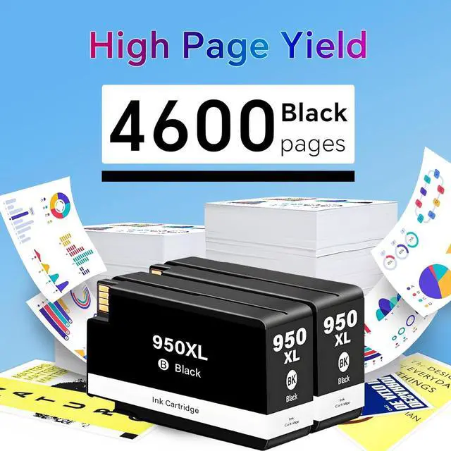 Print more with 950xl high yield ink cartridges. Print up to 2300 pages with each 950 XL black ink cartridge, these page yield estimates are based on a coverage of 5% on A4 paper.