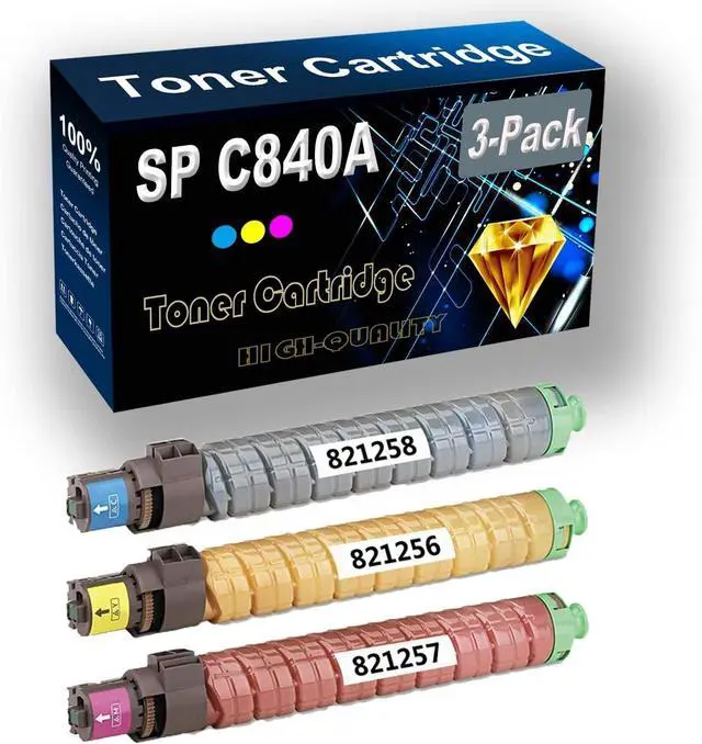 Package included: 3-pack Compatible 821258(Cyan) + 821256(Yellow) + 821257(Magenta) Toner Cartridge (1 Cyan, 1 Yellow, 1 Magenta, Total)