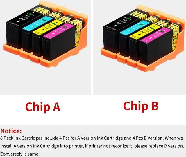 Premium Quality Ink for High-Quality Printing: The high-quality ink in the cartridges ensures that your prints have vibrant colors and crisp black text, making it ideal for both professional and personal use.Among our two sets, we include a set of A chips and another set of B chips. If A chip is finished printing, please use B chip to reset the chip ink level, and if B chip is finished, please use A chip.