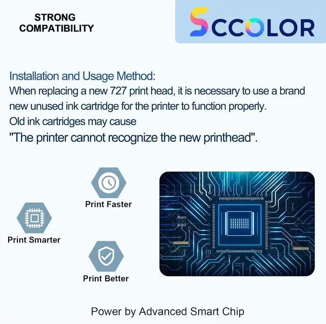 Installation and usage method:When replacing a new 727 print head, it is necessary to use a brand new unused ink cartridge for the printer to function properly. Old ink cartridges may cause"The printer cannot recognize the new printhead".