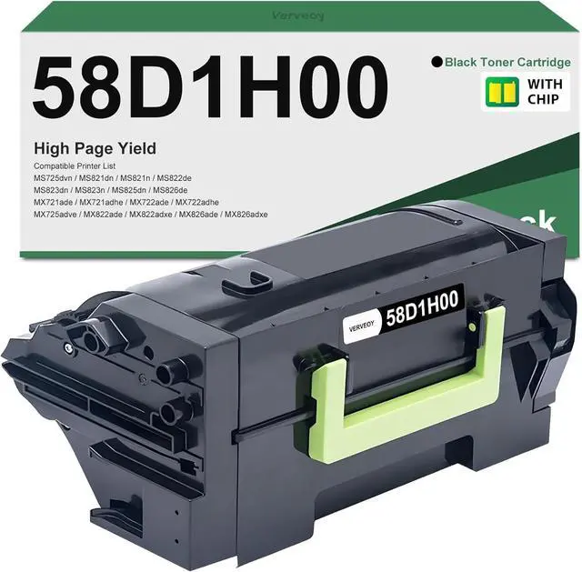 Package Content: Verveoy Compatible with Lexmark 58D1H00 Black Remanufactured toner cartridge(1-Pack)