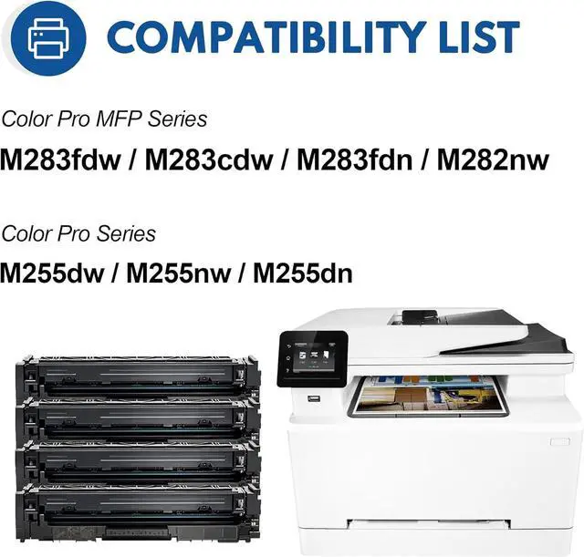 206X toner printer compatibility: Color Pro MFP M283fdw M283cdw M283fdn M282nw, Color Pro M255dw M255nw M255dn printers