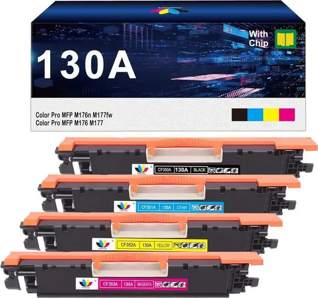 Package Include: 4 Pack 130A CF350A toner cartridge replacement for HP 130A toner cartridges MFP M177fw toner (Black, Cyan, Magenta, Yellow)