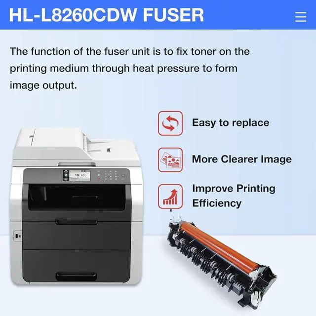 High stability: HL-L8350CDW HL-L8360CDW Fuser can withstand the heat and pressure required to melt toner onto paper without premature wear or causing print quality issues. A highly stable fixative will produce clear and distinct prints with almost no defects such as toner scattering, ghosting, or streaks.