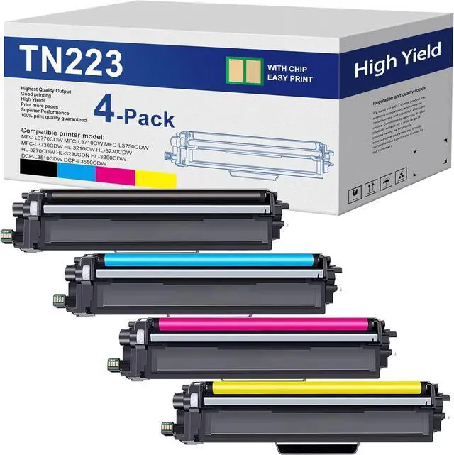 Package Contents: 4 Pack TN223 TN223BK TN223C TN223M TN223Y High Yield Toner Cartridges (1Black+1Cyan+1Magenta+1Yellow)