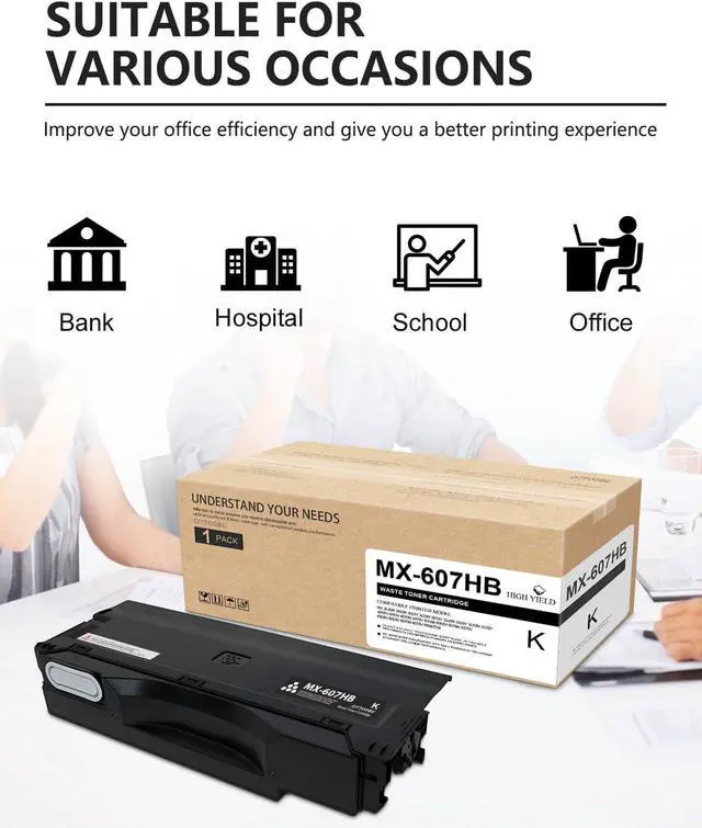 The product includes - 1 Pack MX607HB Waste Toner Cartridge(Compatible with MX-601HB Waste Toner Cartridge)