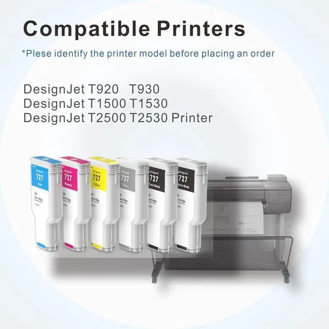 MODEL NUMBERS: Compatible with HP 727 series including C1Q12A, F9J79A, F9J76A, F9J77A, F9J78A, and F9J80A
