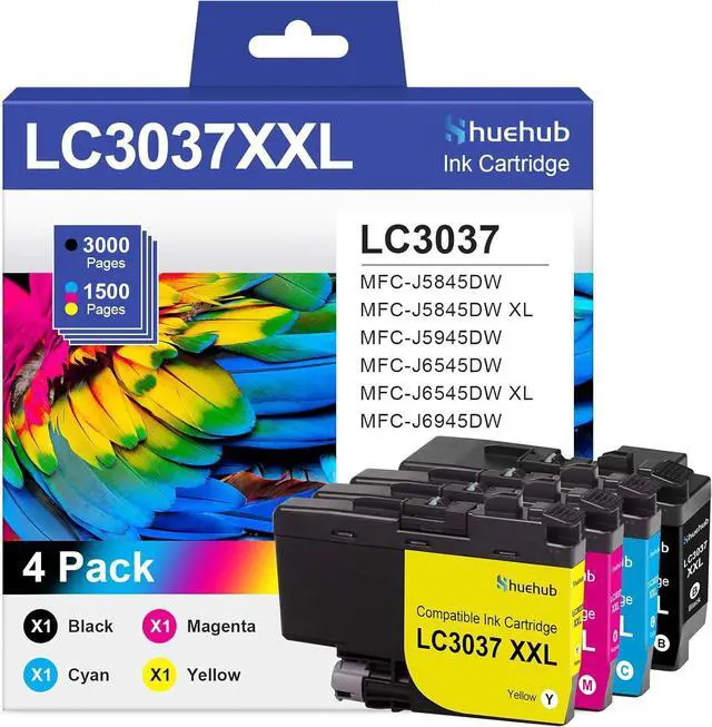 Package Contents: 4 Pack LC3037XXL Ink Cartridges, (1 x LC3037BK Black, 1 x LC3037C Cyan, 1 x LC3037M Magenta, 1 x LC3037Y Yellow)