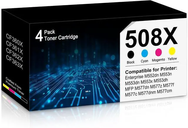 Package Include: 508X toner cartridges 4 Pack(1 Black 1 Cyan 1 Yellow 1 Magenta)