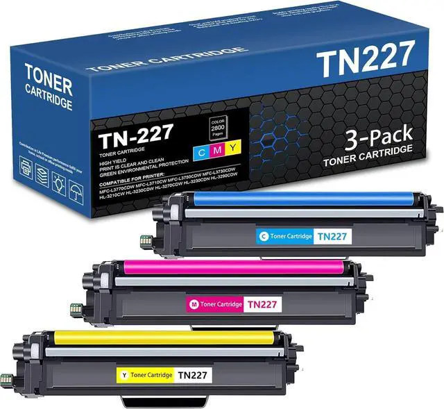 Package Contents: 3-Pack TN227 Toner Cartridges (1Cyan+1Magenta+1Yellow)