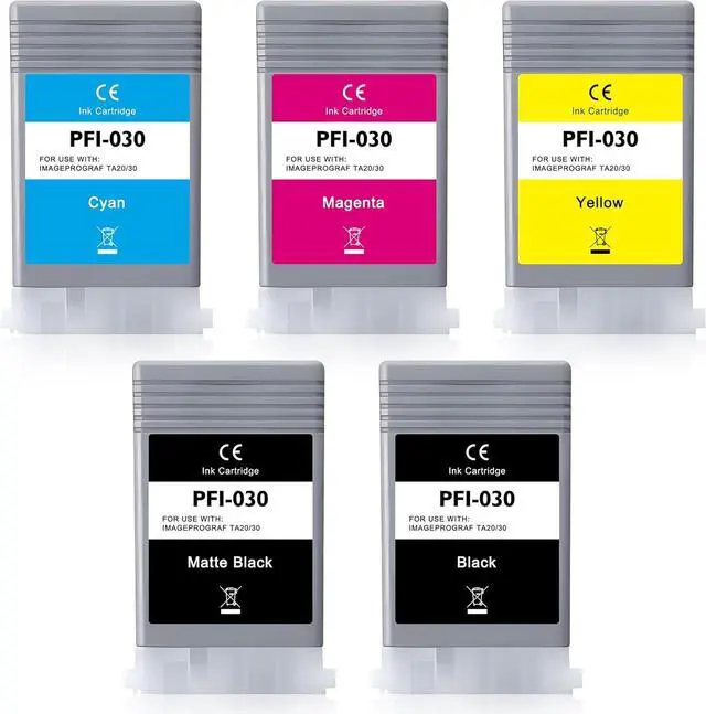 Package Contents: 5 Packs of PFI-030 Ink Cartridge 55-ml Set ( Matte Black, Black, Cyan, Magenta, Yellow)