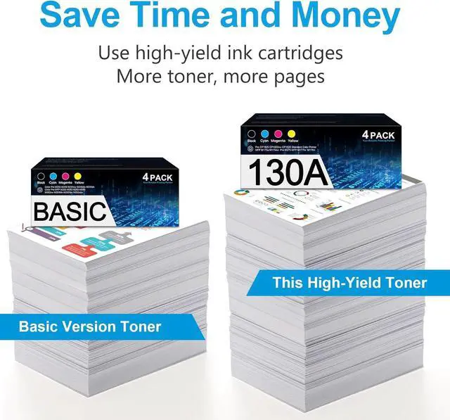 High-yield performance: 130A black toner: 1,500 pages, color toner (cyan/yellow/magenta): 1,200 pages each, based on 5% coverage (Letter/A4), reduces replacement frequency and ensures long-lasting use