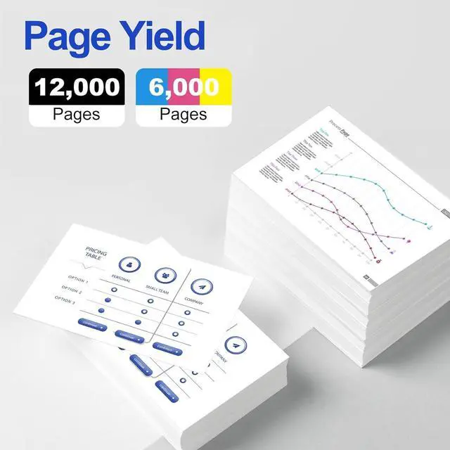 Page Yield: 12,000 pages black, 6,000 pages color Toner Cartridge at 5% coverage of A4 / Letter