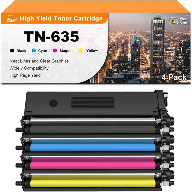 High Yield: The TN635 toner cartridge has a capacity of approximately 4,500 pages per Black and 4,000 pages per Cyan / Magenta / Yellow (at 5% coverage on A4 paper), enhancing your printing efficiency