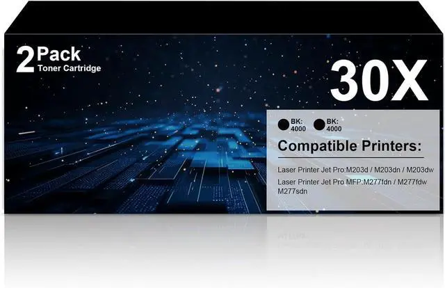 Package contains:2 Pack Black 30X Toner Cartridges Replacement for HP 30X 30A Black High Yield Toner Cartridges