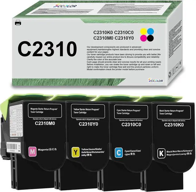 Package includes: 1 x C2325 Black Toner Cartridge ,1 x C2325 Cyan Toner Cartridge ,1 x C2325 Magenta Toner Cartridge ,1 xC2325 Yellow Toner Cartridge,Total 4 pack